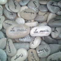 Et voilà mes 90 marques places adultes terminés! Galets ramassé au bord de la plage par ma famille A Marseille. Écriture par moi même et vernis avec l'aide de ma fille de 7ans.