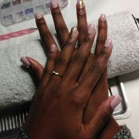 Coucou les filles, Voici les essais de ma 1 ère manucure au couleur du mariage. J'aime bien. La prochaine fois je ferai les ongles bcp plus arrondi. C'est un peu trop carré à mon goût. C'est jolie...