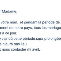 Bonjour la communauté, J'ai un petit soucis enfin un gros... Nous nous marions le 15mai et comme pour beaucoup nous commençons à envisager à décaler le mariage mais nous nous marierons bien le 15mai...