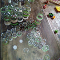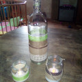 Voilà mes déco fait main , j'adore mais qu'estce que c'est long (surtout avec deux enfants dont un tout petit qui grimpe partout) mes vases fait avec des bouteilles de jus de pommes et les bougeoirs...