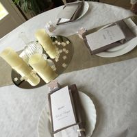 Bon le jour j la nappe sera en tissu et il y aura plusieurs verres et de la belle vaisselle mais bon histoire de tester les couleurs : nos couleurs sont le taupe et l ivoire. Les housses de chaises...