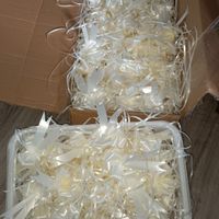 Voici nos nœuds (plus de 120)qui serviront à habiller un petit peu nos chaises, car pas de housses. Mais aussi pour les voitures.