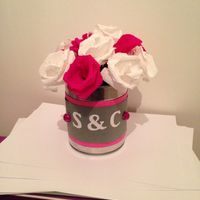 Voilà après une nuit de réflexion et surtout votre aide à toutes j'ai enfin fini mon pot de fleurs qui se trouvera sur la table avec l'urne et le livre d'or. Je ne suis pas encore pleinement...