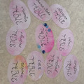 Coucou! Ce matin je me suis mise aux marque-places, trouves chez Noz cet été. J'ai écrit les prénoms avec un feutre calligraphie de chez Action.