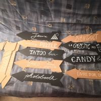 Coucou tout le monde ! Ça y est, nos panneaux directionnels pour le vin d'honneur sont prêts ! Il y en a 13 en tout. Ça m'a pris toute la journée, heureusement que c'était férié ! J'ai acheté les...