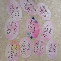 Bonsoir à tous ! On est en train de préparer le plan de table.Au final on mettra des fleurs dans des terrariums et on en fera descendre un ovale en papier cartonné avec le nom de la table et des...