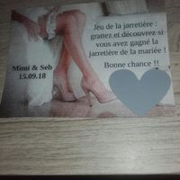 Voici un peu plus en détails mon jeu de la jarretière....des feuilles cansons ....une image dans Word , un texte et des coeurs à gratter de chez wish ( petite tailles) et un peu de decoupage 6 photos...