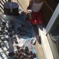 Petit matinée peinture avec ma princesse ! Ont les peints en doré pailletés argent pour les mettre dans des grand vases pour rehausser les branches de fleurs des vases qui seront de chaque côté de mon...