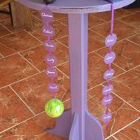 Chéri ma fabriquer un petit guéridon. Les rubans seront accrochés tout autour avec une boule de couleur, la couleur se retrouvera sur chaque table, comme ca les invités seront imédiatement où se...