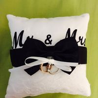 Apres toutes mes commandes jai recu mô dernier colis pour l'instant !!! Mon coussin d'alliance trop choupinou et en accord parfait avec notre thême Mr et Mme !!!Ca rappelle bien le costume et la robe...