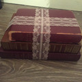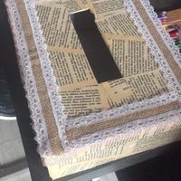 Urne pour le mariage faite ! Notre thème les livres 📚 je pense que j’aurai dû mettre les bandes de dentelles en biais mais bon c’est fait !