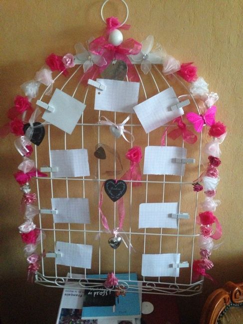 Moi j'ai voulu faire simple, (surtout le cadre je l' ai acheté tel quel sur le bon coin) : ) c'est dans mon thème ; blé, lavande champêtre j'ai juste eu à ajouter les pinces à linge en forme de coeur en ardoise. J'écrirai le nom de chaque table et je...