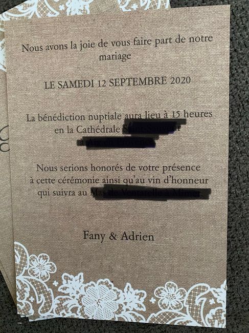 Voilà nos faire parts pour le Vin d’honneur Nous allons avoir seulement 20 invités pour le vin d’honneur Pour la petite histoire nous nous sommes rencontrés il y a 3 ans dans le cadre d’une formation qui a durée un an on était dans la même classe 😜...