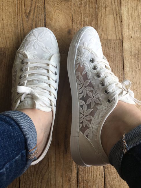 Coucou la communauté ! Voilà mes chaussures de retour de noces, si ça peut aider certaines en panne d’inspiration ! C’est des chaussures en toile avec un motif floral et tout en transparence sur les côtés. L’avantage est qu’elles pourront se porter...