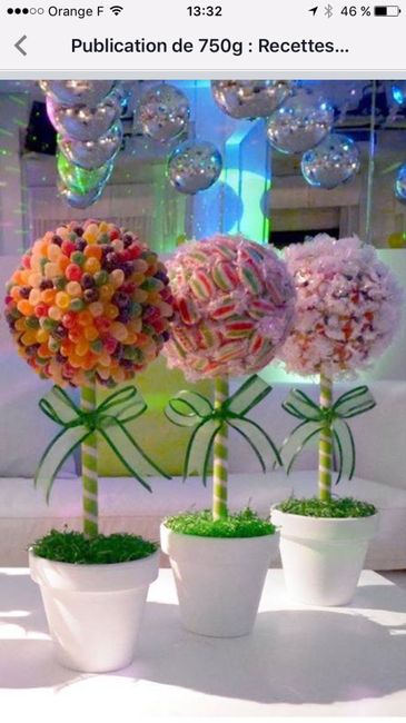 Salut tout le monde !! Dites moi je viens vers vous car je souhaiterais réaliser ce type de deco pour le bar a bonbon. Certaines d entre vous on testé ? Quels sont vos conseils?Je pensais prendre des boules en polystyrène mais apres quel matériel...