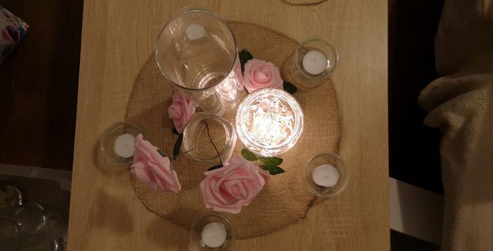 Coucou. Après un petit tour à action ou j'ai fait des bonnes affaires ^^ et jai été chez ma meilleure amie récupèrer 2/3 truc. Ce soir c'est 2eme essai centre de table invité Aimez vous ? Dans le grand vase il y'aura une petit bouquet de fleur. Dans...