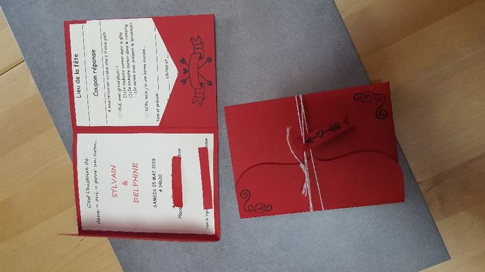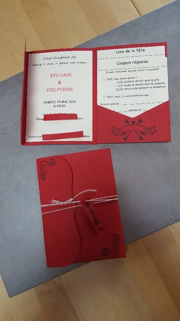 Coucou la commu! J'aimerais votre avis sur mon faire part Svp!!? Bon le trou de l'étiquette est à revoir mais pour le reste vous en pensez quoi? Bonnes prépa a tous et toutes!