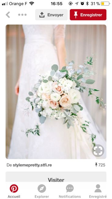 Coucou le monde, pourriez me montrer vos bouquets de mariées. Le mien je pense qu'il sera rond couleur blanc et parme. Rdv avec la fleuriste mercredi. Merci d'avance😉