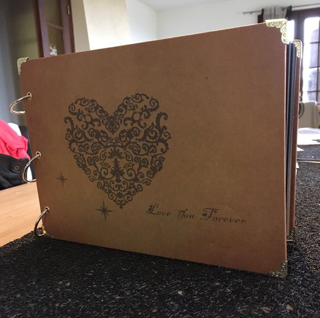 Coucou tout le monde! un petit colis mais qui fait toujours plaisir ,notre livre d’or ,simple mais j’adore😉 plus qu’à finir notre arbre à empreintes et je pourrais faire un petit test de table avec l’urne ...