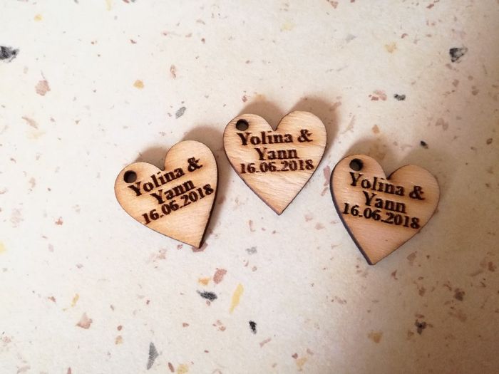 Coucou !! Voilà l'avant dernier colis de chez Aliexpress est arrivé !! P'tits cœurs gravés, pour mettre sur les boîtes à dragées 😊 6€50 les 50 gravé, reçue en 1 mois Belle journée 😘