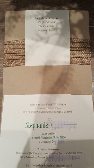 Bonjour Question bĂȘte car je pense avoir ma rĂ©ponse mais bon ... Je vais commencer mes faire part , du coup je dois en faire exemple 50 exemplaire pour les gens invitĂ©s au repas et 50 autres pour ceux seulement invitĂ©s au vin d honneur et cĂ©rĂ©monie...