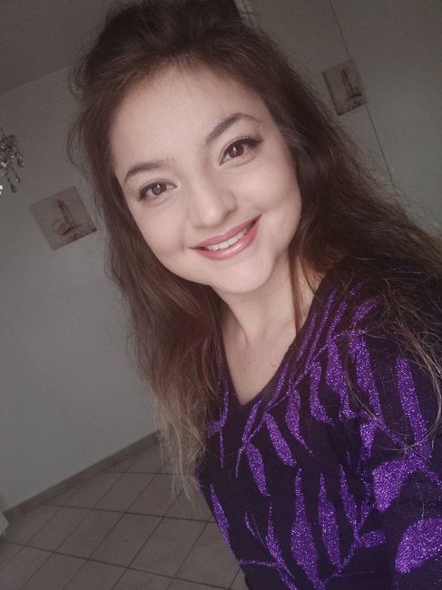 Voilà comme promis le résultat coiffure, de la partie technique (coupe + couleur), on voit pas trop là car le soleil est pas là mais la couleur a des reflets violine d’ou le maquillage qui va sur les mêmes couleurs, j’ai mis une photo du rendu pas...