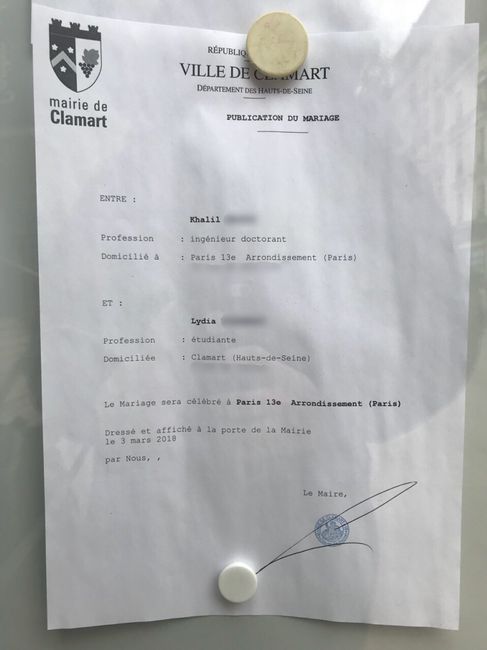 Affichage des bans de mariage devant la mairie ☺️. D’ailleurs ce que je trouve bizarre, cest que bien que cette information soit quelque chose de publique, elle n’est pas consultable sur le net !