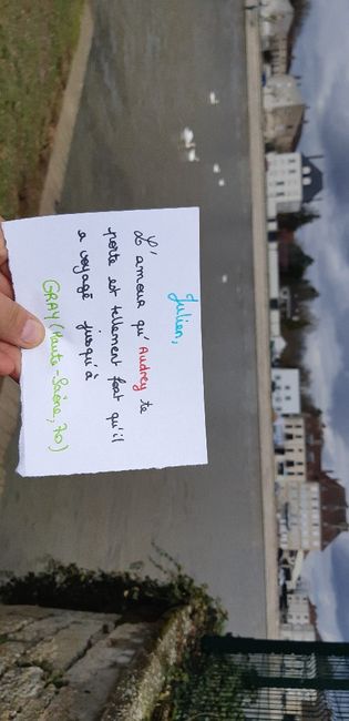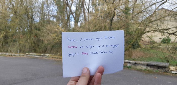 Bonsoir, Je viens de voir l'idée de la "Love note" et j'aimerais le faire pour mon homme afin de lui montrer tout l'amour que j'ai pour lui. Et que cet amour peut faire la France entière. Svp pourriez-vous me faire une photo de chez vous avec le...