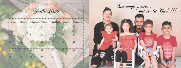 Voici un essai fait sur un logiciel. Format double carte. La couverture et le derrière du faire part. Vous en pensez quoi, est ce que je laisse une photo de famille ou je met une photo couple?