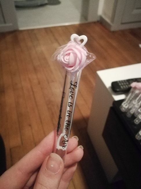 Et 90 flacons bulles customisés terminés ! Merci AliExpress ! Ils seront distribués à la sortie de l'église.