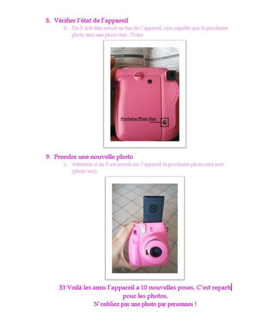 Coucou les filles voici les instructions pour l'utilisation de l'instax que je compte laisser aux invités pour le photobooth, vous en pensez quoi? Page 1 Page 2 Page 3 page 4 Page 5 Page 6