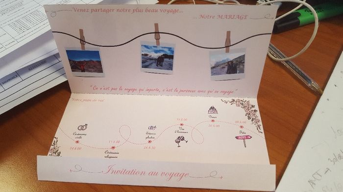 Bonjour Ă toutes đ Nous venons de finir l'impression de notre faire part test sur le thĂšme du voyage. Qu'en pensez-vous? des Avis? Conseils, suggestions....? Tout est bon Ă prendre đ "Pochette faire part recto" "Pochette" faire part verso IntĂ©rieur...