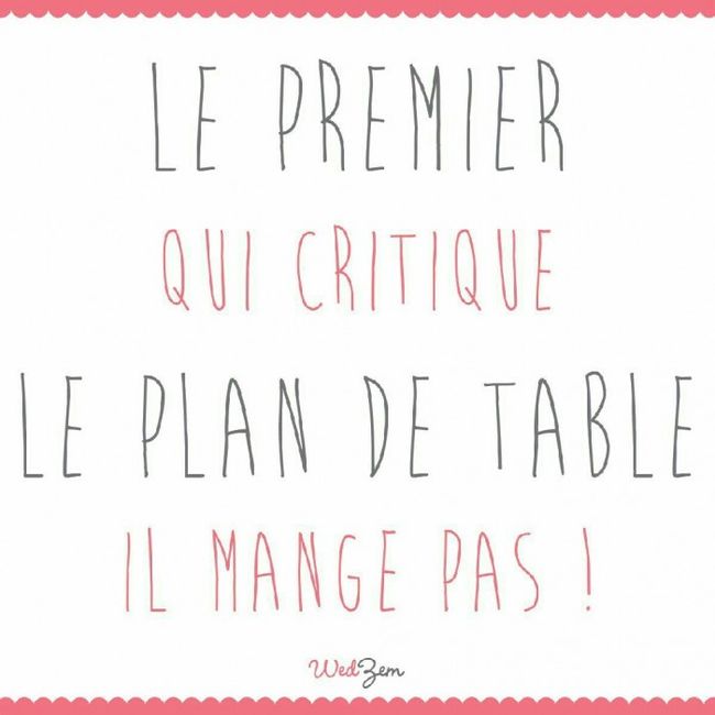Vous aussi vous avez des invités qui annoncent déjà la couleur ??? " ah non tu me mets pas à côté de lui... Oui de lui..." Un vrai casse tête... une fois j ai été à un mariage ou ils ont fait un tirage au sort déterminer les tables g trouvé ça drole...