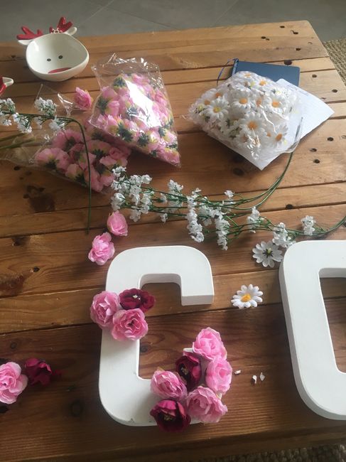 Bonsoir les nanas , cet après midi j’ai commencé à faire mes lettres fleuries ! du moins j’ai posé les fleurs dessus pour imaginer ce que ça donnerait collé ! Qu’est ce que vous en pensez ? Je vais les coller au pistolet à colle ! Belle soirée à vous...