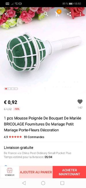 Je ne sais pas vous, mais moi je ne veut pas lancé mon propre bouquet donc j'ai acheter un plus petit qui ressemblera au miens. Super affaire à la foire fouille 3,99€ je désespéré de trouver. Une bonne chose de faite