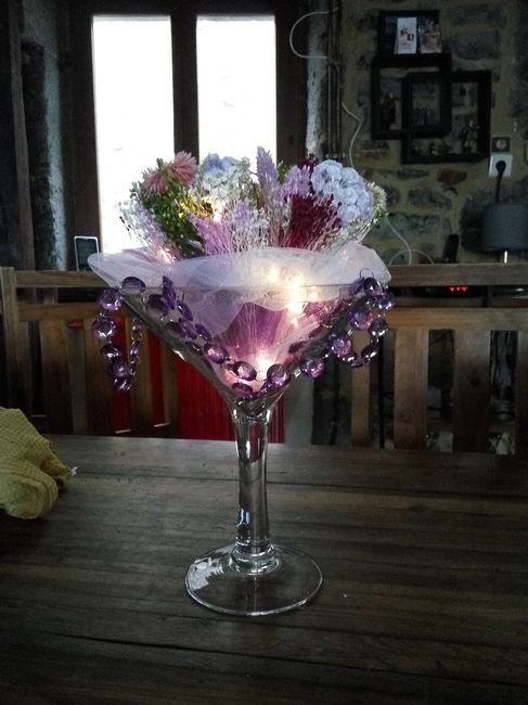 Je viens de terminer ma composition de centre de table avec mon bouquet sec. Maintenant que j'ai trouvé le bon arrangement, je peux commander les autres bouquets la conscience tranquille. Il me restera à peaufiner un peu l'arrangement des LED, mais...