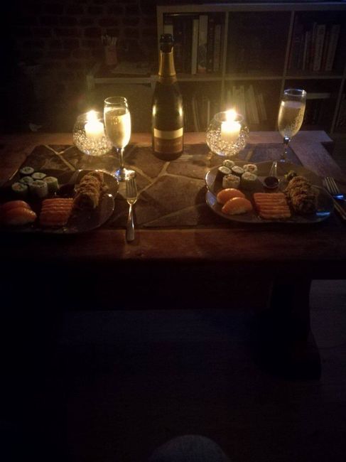 Comme le titre l'évoque, on vient de passer la barre des 100 jours avant le mariage, et pour marquer le coup, petit repas en amoureux (nos cinq enfants sont emmurés dans leur chambres respectives). La consigne était claire : le premier qui...