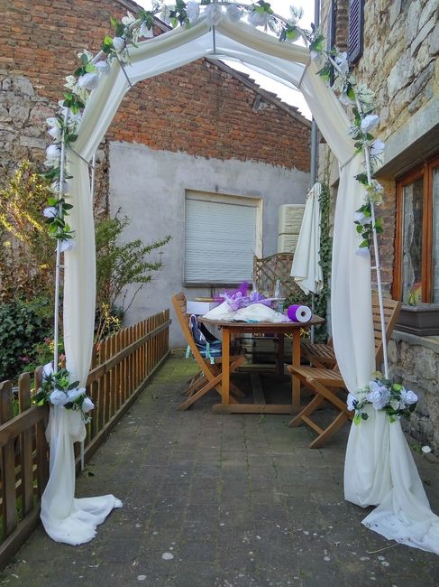 A J-75 du mariage, la décoration de l'arche pour la cérémonie laïque est terminée. Et ce ne fut pas une mince affaire avec le vent : la mousseline c'est très doux et très joli, mais c'est surtout très léger. Cela nous a confirmé dans notre choix de...