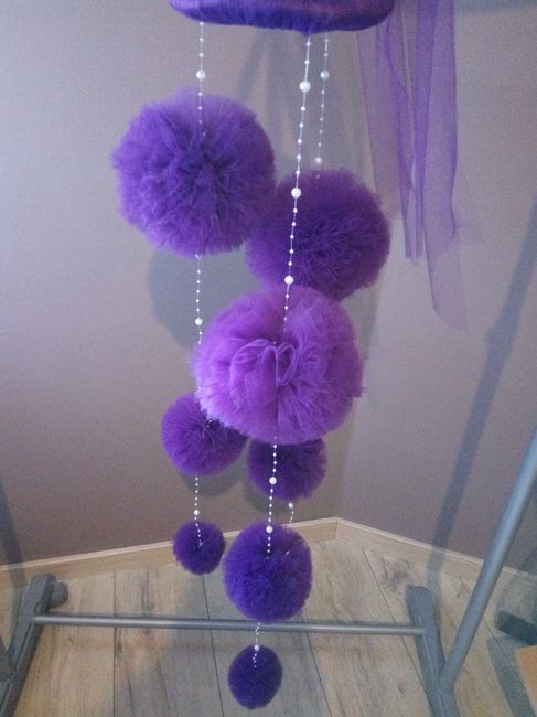 Comme j'ai du temps avant le mariage, je me suis dit qu'en plus du voilage au plafond, je pourrais m'amuser avec des pompons, j'ai donc commencé. Il m'en reste une dizaine à faire pour que ça finalise bien ma déco. Pompons parmePompons blanc