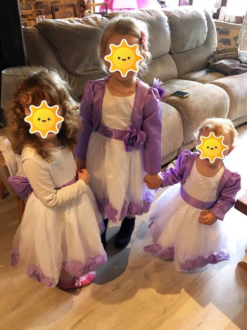 J'ai reçu hier les robes de mes petites demoiselles d'honneur (mes deux nièces et ma petite dernière). Elles sont à croquer avec leurs petits boléros et leurs robes à froufrous. Mes petits soleils