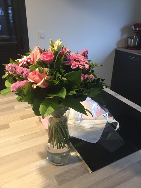 Coucou les FM hier soir coup de fil : « allô c’est le fleuriste j’ai des fleurs à vous livrer » je regarde mon futur et lui dit pour la surprise c’est raté ! Et ben non : c’est des cousins éloignés ( je les connais même pas) qu’on avait invité mais...