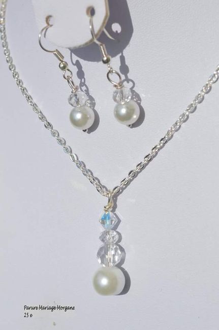 Voilà les 2 photos reçus par la créatrice de bijou de ma parure : Perle de swarowsky et chaîne en argent.