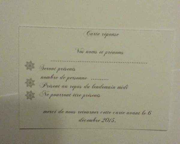 Bonjour, j'ai reçu mes faires parts et j'aimerai rajouter un coupon réponse mais j'ai du mal à savoir quoi mettre? et si je dois en faire des défferents? car il y a ceux qui sont invités juste vin d'honneur, d'autres vin d'honneur et repas du soir et...