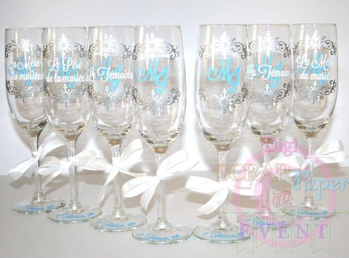 Voilà nos flûtes pour nos parents / témoin et nous et on y mettra un petit ballotin en tulle bleu avec nos dragées). Ainsi que notre porte alliance. Perso je suis archi fan