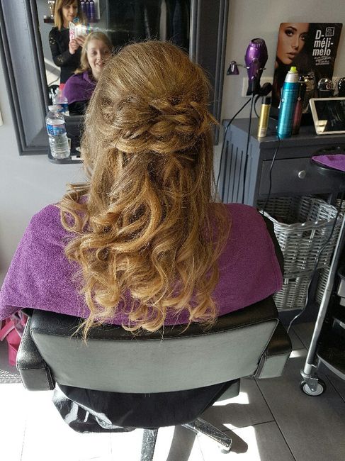 Pffff c'était dur je n'arrivais pas à me décider... j'étais partie sur une natte toute attachée er du coup ça ne m'allait pas. Finalement jai opté pour des cheveux attachés juste en haut et des anglaises, vous en pensez quoi les filles ?sachant que...