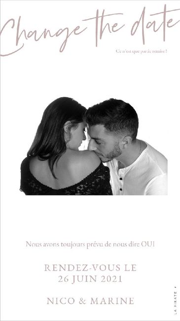 Bonjour à toutes les Brides, Nous sommes aussi les victimes indirectes de ce fichu virus et notre mariage initialement prévu le 20 juin 2020 est reporté pour une année. Nous avions fait nos faire part la première fois mais cette fois-ci nous...