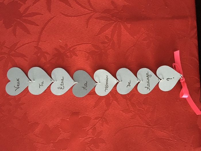 Bonsoir ! je souhaiterai savoir de quelle manière avez vous fait la demande à vos (futures) témoins ? j’aimerai faire quelque chose un peu original plutôt qu’une carte basique ... peut être un cadeau , un colis je ne sais pas ! Aidez moi 😉😉😉 Merci...