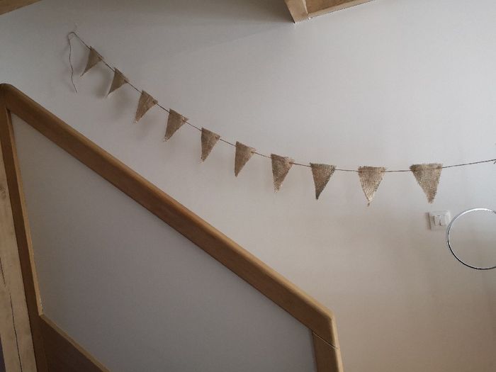 Salut les filles Voilà le résultat de mes guirlandes fanions fait avec des sacs à patates 🙂contente de moi lol