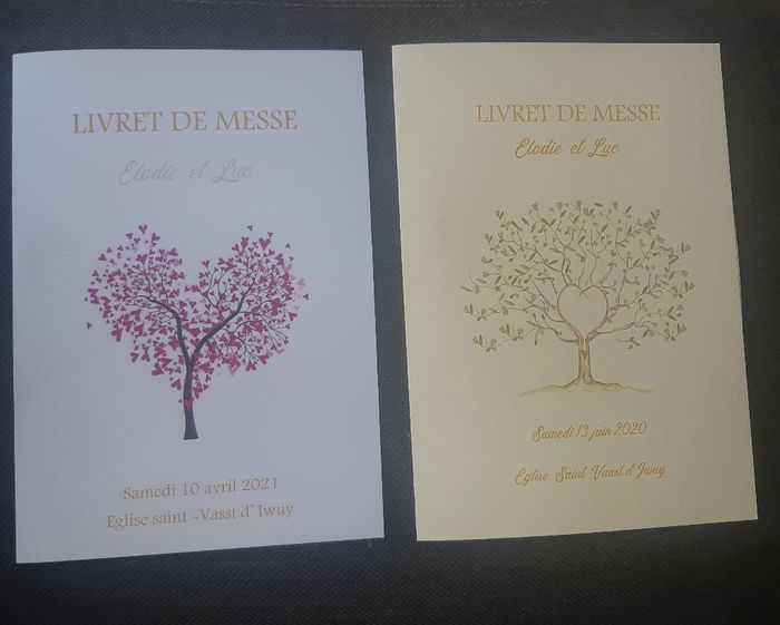 Coucou les fm, aujourd'hui j'ai besoin de vos avis! Voila, notre mariage étant reporté en avril 2021 ,je refais ma couverture de livret de messe avec la bonne date. Mais bien sûr il a fallu que fasse des changements 😅 j'ai changé le dessin de l'arbre...