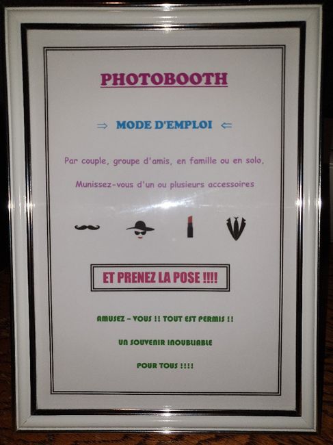 Coucou les filles, aujourd'hui jai terminé mon "panneau" explicatif pour le photobooth il sera posé sur une table avec les accesssoires! 😊